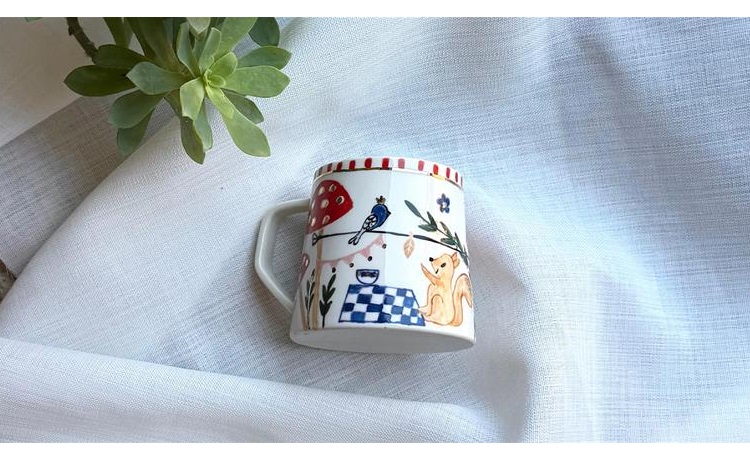 SİNCAP VE MAVİ KUŞ PORSELEN KULPLU BARDAK